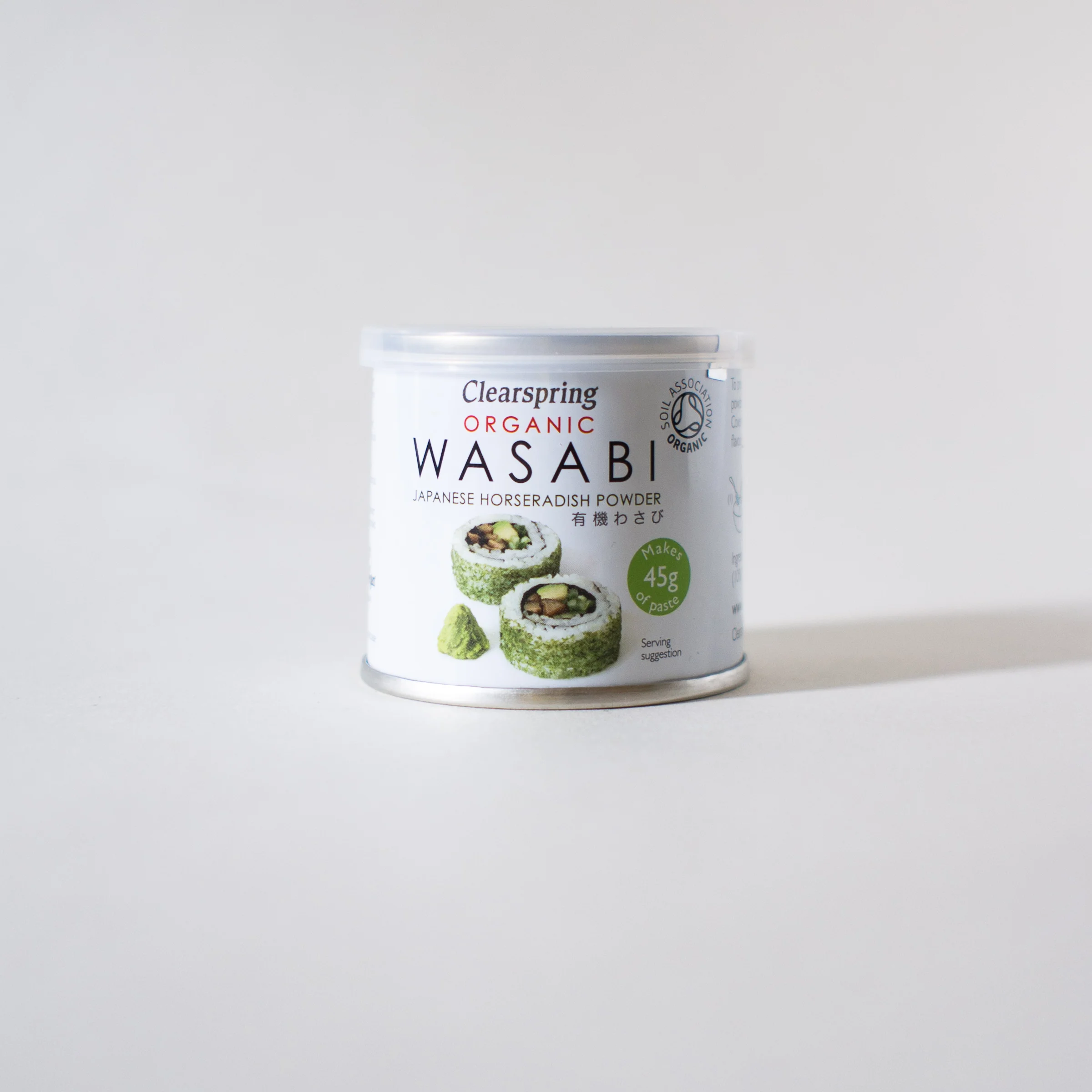 Did you know that the green paste known as wasabi almost never contains any actual wasabi? Still, whether it comes in a tube or in powder form, it’s a respectable ingredient in its own right, made with plain European horseradish root and green dye. I search vigilantly for powders that contain only natural ingredients. My favorite, from Clearspring, actually contains 10% true wasabi—but it’s expensive and hard to find. A good substitute is the Kona brand, with no true wasabi but the respectable addition of spirulina and turmeric. It lacks the Clearspring’s complexity and reconstitutes into a smoother paste that’s a brighter, lighter shade of green. It’s a great second choice—at a third of the price.