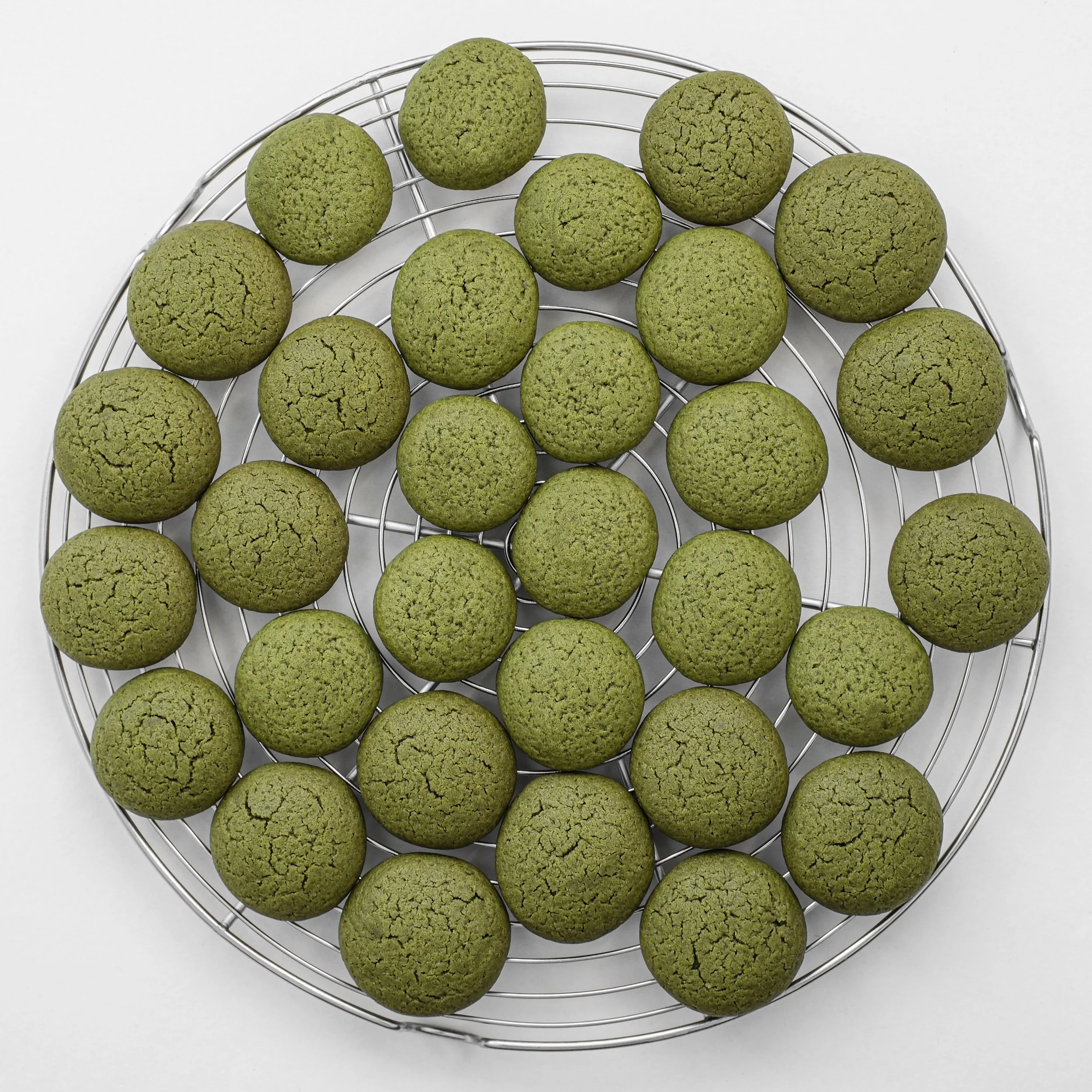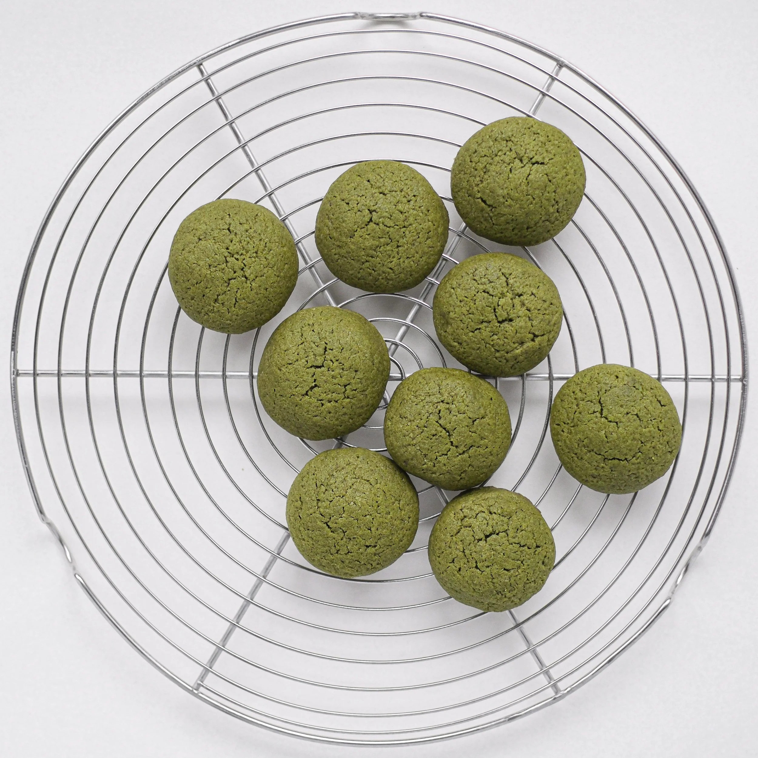 I came up with this exact recipe after a string of experiments in matcha-based baking—attempts at shortbread, pound cake, and various types of drop cookie. (That’s the kind you neither roll-out-and-cut-out nor chill-and-slice, but rather “drop” onto the baking sheet. And if you’re like me, you might enjoy dropping the dough in disciplined little balls of equal size.) All the stuff I made showed promise, but only these domed beauties were a foolproof case of total perfection. So I wrote down exactly how much of what I used and I’ve repeated everything to the gram ever since.
