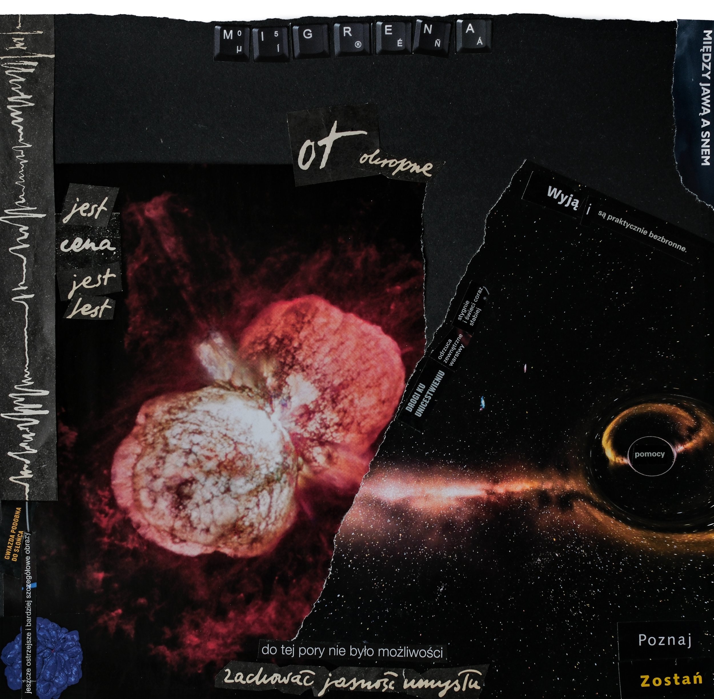 Maybe one day I’ll write about everything I know—from all I’ve experienced as one living with this condition to all I’ve discovered in the course of seeking relief from it. But today I just want to show a collage I didn’t know I had in me, which presented itself during an early evening of collage-making among friends (one I couldn’t confirm I’d attend until the day of owing to all those recent migraines).